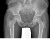 男,5岁,髋部疼痛乏力伴跛行5个月,结合图像,最可能的诊断是()
