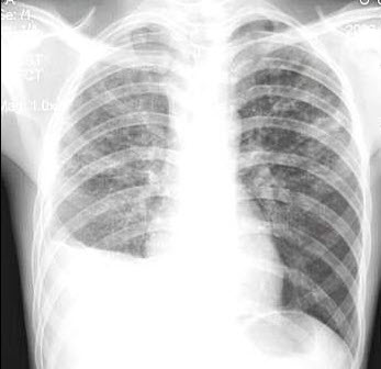 男,20岁,胸闷、低热1月余,突然咯血,X线检查如图,最可能的诊断是()