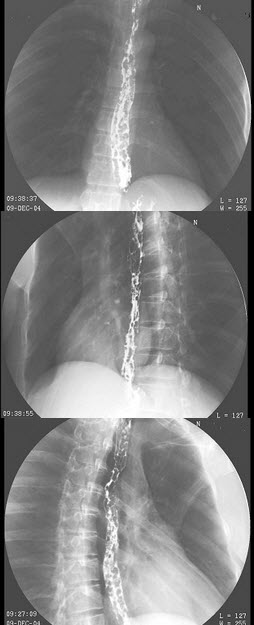 16、单项选择题 男,50岁,吞咽略有不适感5月,背部胀痛1周,查体未见明显异常,食管钡餐透正位观食管中段有约2×3cm椭圆形充盈缺损,钡剂通过略有停顿,粘膜皱襞无破坏中断征象,管壁伸缩自如侧位示相应段食管后壁有一浅弧形压迹,腔外似有一类圆形的软组织阴影,该病例进一步检查宜选择()