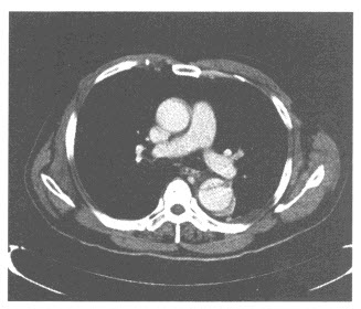 血友病患者突发胸闷,气急,体查见颈静脉显露,嘴唇发绀,影像学检查如图,最可能的诊断为()