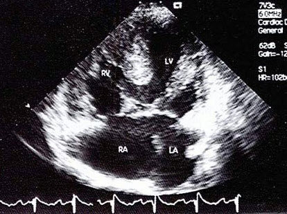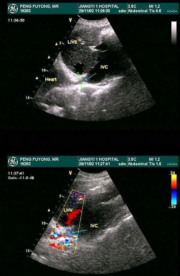 患者女76岁,上腹部胀痛不适半年余,加重1周。剑突下B超检查如图所示,根据超声声像图诊断为()