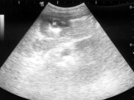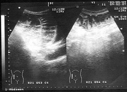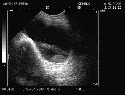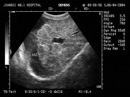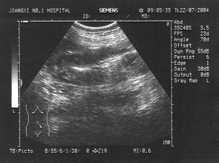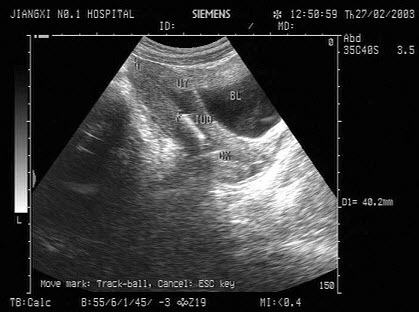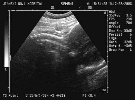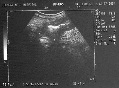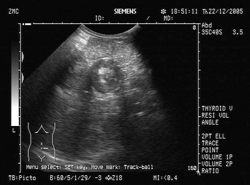 女,42岁,反复上腹疼痛不适多年,加重3天。声像图如图所示,最可能的诊断为()
