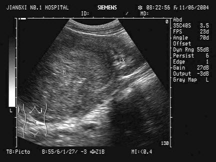 男,49岁,上腹不适1个月余。结合超声声像图,诊断为()