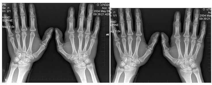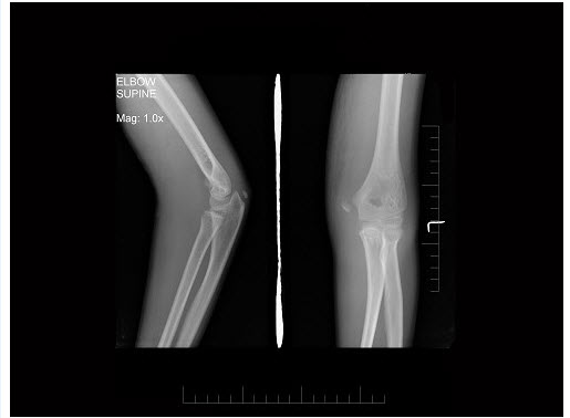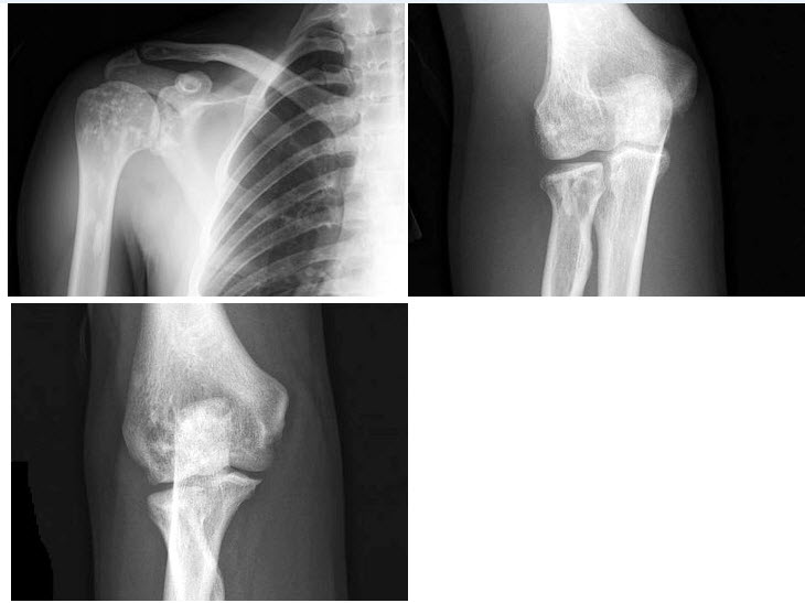 男,17岁,来右前臂疼痛,肿胀近2年,2周前疼痛加剧,查体右前臂压痛明显,皮肤稍显红肿,结合图像,最可能诊断是()