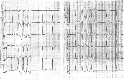 患者女性,34岁,反复发作心动过速,临床检查未发现器质性心脏病。心电图如图所示,应诊断为()