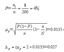 所以,这批产品的废品率为(4%±2.7%),即(1.3%,6.7%)。因此,不能认为这批产品的废品率不超过5%。