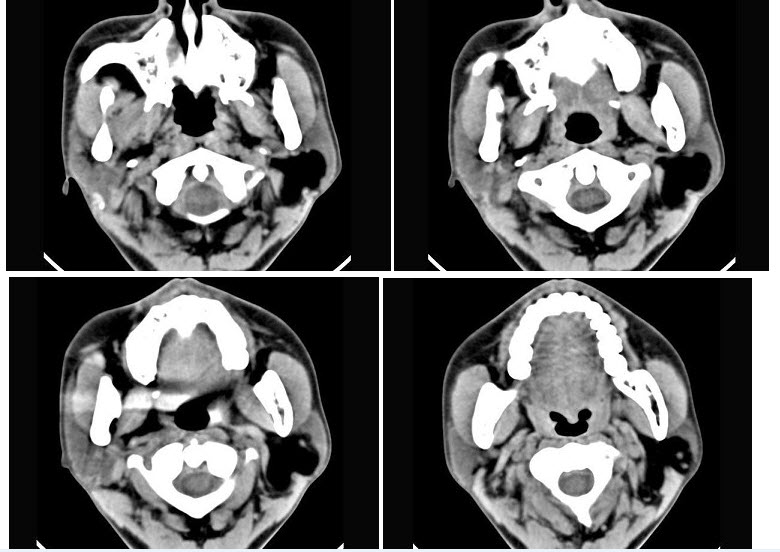 284、多项选择题 旋转性寰枢关节半脱位的CT诊断,正确的为()