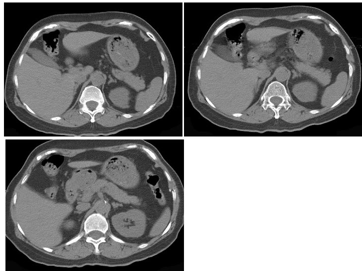 患者,女,56岁,上腹隐痛半年余,黑便。上腹部CT增强扫描图像如下,最有可能的诊断是()