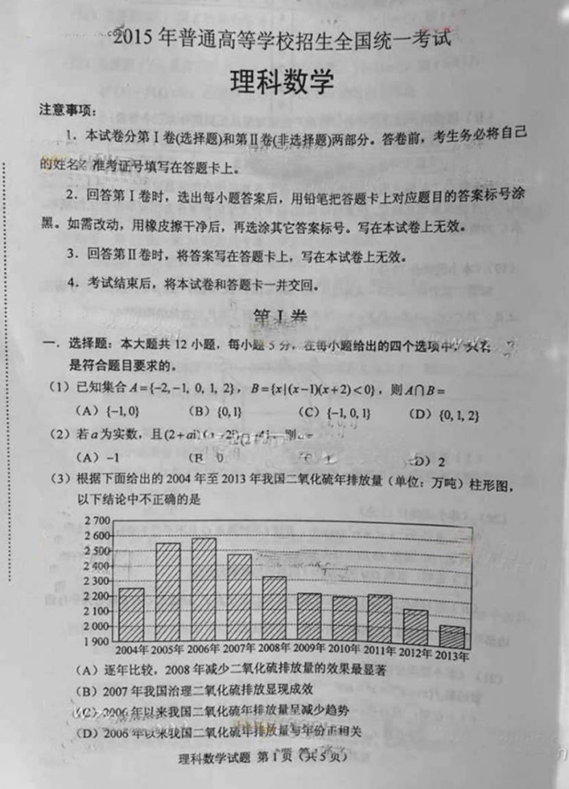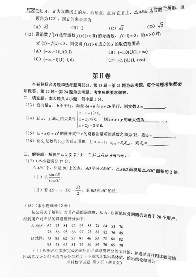 2015年高考真题——数学(理)(新课标II卷)