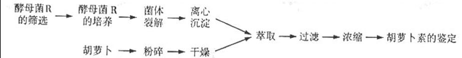 胡萝卜素是一种常见的食物色素,可分别从胡萝卜或产生胡萝卜素的微生物菌体中提取获得,流程如下: