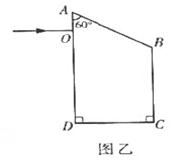 (2)如图乙所示,ABCD是一直角梯形棱镜的横截面,位于截面所在平面内的一束光线由O点垂直AD边射入。已知棱镜的折射率