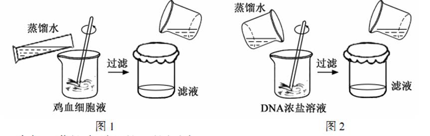25.图1、2分别为“DNA的粗提取与鉴定” 实验中部分操作步骤示意图,下列叙述正确的是