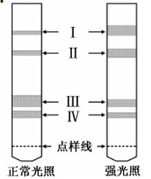 色素,用石油醚进行纸层析,右图为滤纸层析的结果(I、Ⅱ、Ⅲ、Ⅳ、Ⅴ