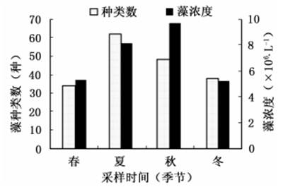 22.研究人员在不同季节对一小型湖泊水体进行采样,调查浮游藻类的数量