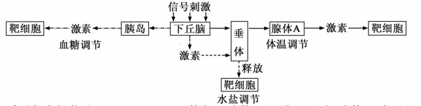 (1)受到寒冷刺激时,下丘脑可通过垂体促进腺体A的分泌活动,腺体A表示的器官