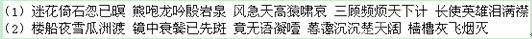 本题解析:本题既有初中教材的内容,也有高中教材的内容。选用的题材大都为名句,但易错字较多。如(1)暝、吟、啸、烦、长。(2)渡、衰、竟、霭、樯橹。樯橹有几种写法,要依版本不同而灵活掌握。