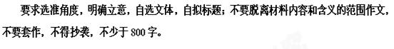 【注意】①所写内容必须在材料范围之内。②立意自定,角度自选。③文体不限。④不少于800字。