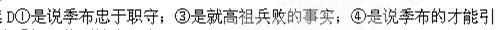 小题3:以下六句话,分别编为四组,全都表现季布“任性使气”的一组是(?)(2分)