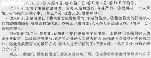 小题4:德兰修女拒绝仁爱服务的制度化、设施化,认为现代人迷失在制度、设施里已经很深了,结合全文,谈谈你的看法。(8分)