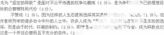 小题3:作者在结尾处表示,自己要“坚定地成为一个异数”,你赞成他的这种选择与人生态度吗?请表明观点并简要说明理由(6分)