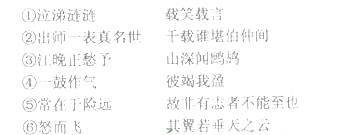 1、阅读题 在横线处写出诗文原句(限选做其中4道题)。(8分)