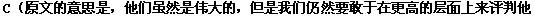 C.史书上的历史人物在他们所处的时代表现了自己杰出的才能,发挥了自己的历史作用,要像历史上的英雄人物一样对待他们,不能低估他们。