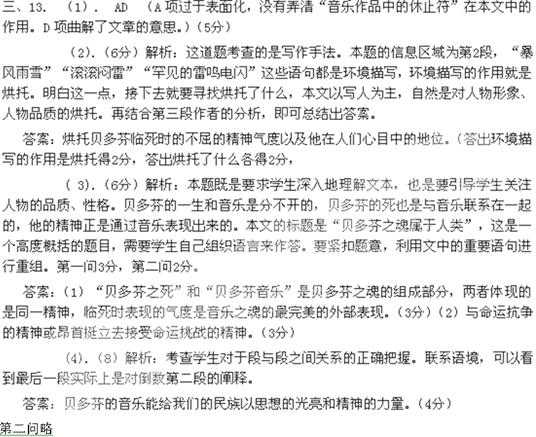 3.文章写“贝多芬之死”和“贝多芬音乐”,这两者有怎样的联系?贝多芬之魂具体指什么?(6分)