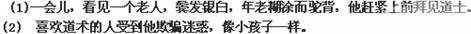小题1:“道士自己饮酒,喝茶正酣”,误“应该是道士和几个朝士饮酒、喝茶”。