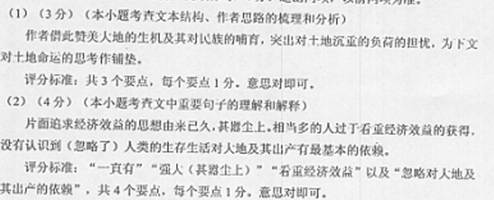(2)如何理解文中“这个世界一直有一种强大的声音试图在告诉人们,重要的不是大地,?重要的不是大地哺育人类的那些根本的东西”的含意。?(4分)
