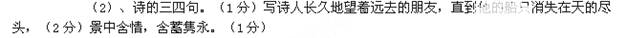 本题解析:②诗句中诗人用细雨、垂柳、画船作结,与诗中前两句景物描写熔为一体,抒发出诗人对友人的挽留和依恋之情,写得情意绵绵,颇具风神情韵之美。(意思对即可得分)(3分)