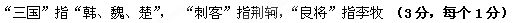 小题2:第一段中的“三国”“刺客”“良将”分别指?(3分)