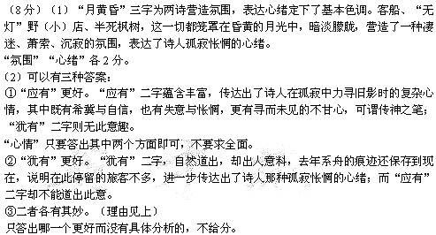 (1)两首诗的首句均用了“月黄昏”三个字,且用意基本相同。请问,两诗借此营造的是一种什么氛围?表达的又是怎样的心绪?请结合诗的具体内容简要赏析。(4分)
