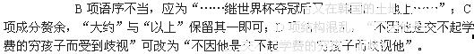 本题解析:④紧跟前一句的“不敢写”,可排除B、C。A、D的区别在于①⑤⑥的顺序,⑤⑥意思联系紧密,所以①不能放在它们中间。