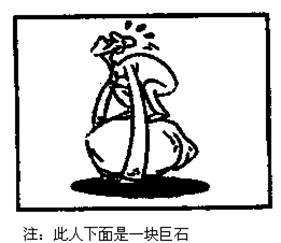 小题1:一个人蹲在一块硕大的无朋的石头上,弯着腰,将两臂搂住巨石,费了九年二虎之力,欲将巨石搬走。(要点:只要说清画面内容,用好一个成语即可)