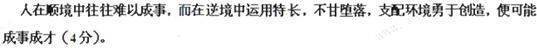 小题3:文章划线句子②的说法你是否同意?有人说逆境容易成才,还有人说顺境容易成才,你赞成哪种说法?请结合自己的感受说说你的认识。(5分)