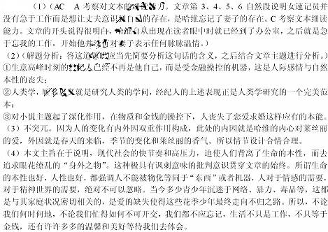 ⑵同意“做作拖沓”之说。①几个人物作用雷同,②都以心理描写的方式回忆往事,③表现手法单一,缺乏变化。(评分标准:表态1分,理由6分)