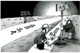 1、语言运用题 请仔细观察下面漫画的画面内容,揭示其中的寓意。要求:准确全面,连贯顺畅,不超过35字。