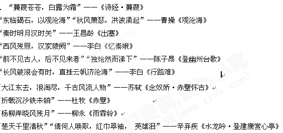 5、语言运用题 下面一段文字中,引用或化用了不少诗词名句,请指出它们是哪首诗词中的名句,作者是谁。(任写三句即可)(6分)