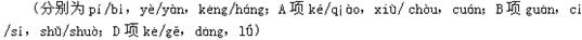 D.沉疴/百舸争流应当/螳臂当车伛偻/衣衫褴褛
