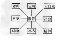 5、语言运用题 根据下面的辐射图,围绕“报答”写一段文氯,不少于60个字。要求:①至少要用到图中的两组对应关系;②至少运用两种修辞方法;③语言流畅,有文采。