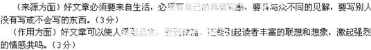 2、语言运用题 以“好文章”为主体,分别从“来源”和“作用”两个方面扩展成一段话,每段不超过40个字。(5分)