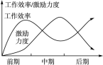试题解析:第一个问题可以依据“中期”的两条曲线的发展方向分析,此时工作效率开始出现下降,而激励力度却一直保持上升趋势。第二个问题,可以从怎样激励员工提高工作效率的角度思考。