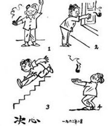 (1)漫画中一个人决心戒烟,把烟斗从楼上扔下,但又信