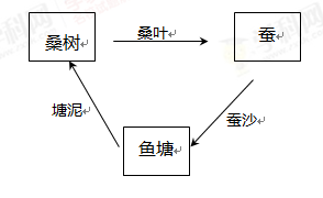 参考答案:【答案】桑蚕立体养殖过程:农民在鱼塘边种桑树,用桑叶养蚕,再
