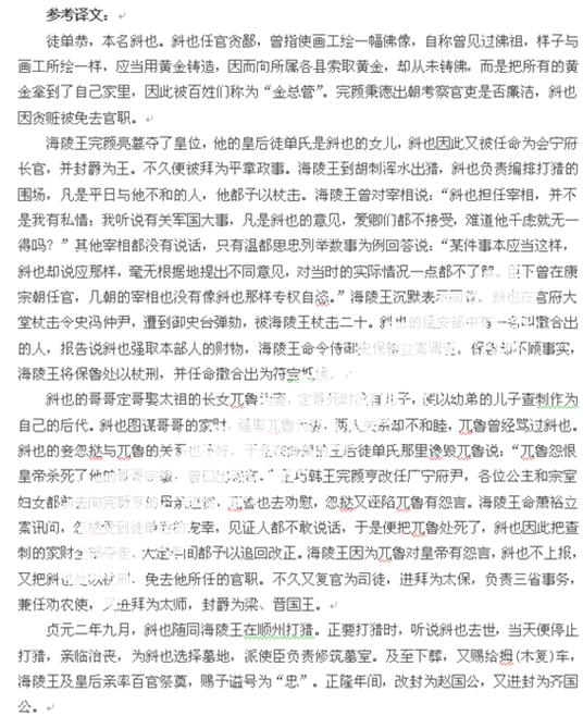 小题3:把文言文阅读材料中画横线的句子翻译成现代汉语。(12分)