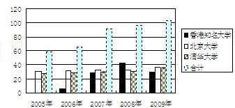 3、语言运用题 【题文】下面是某重点高中2005~2009年升入著名大学优秀毕业生人数统计表,请从两个方面概括图表反映的信息。(5分)
