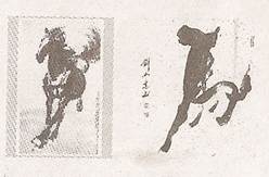 2、语言运用题 右边的绘画和书法作品,展现了画家和书法家心中的奔马的神韵。请用诗或文的形式描绘你心中的奔马。要求:①必须原创; ②运用比喻、比拟两种修辞手法;③不超过60字。(4分)