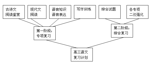 试题分析:此题考查图文转换的能力。表述时,可从最下层的“高三语文复习计划”开始,其次表述“第一阶段”“第二阶段”的复习计划,最后表述最上层的那些具体内容。第一阶段有四个专题,第二阶段有两项复习计划。
