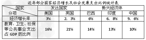 近年来,我国经济持续快速发展,经济增长率不但远高于美、英等发达国家,(1)________________。然而,我国在事关群众切身利益的社会发展支出方面还存在欠缺。例如教育、卫生、社保等基本公共事业支出占GDP的比例,就与经济的高速增长不相协调,(2)________________,甚至低于经济落后于我们的印度。因此在“十二五”规划中,我国将(3)________________,加快建设和谐社会,缔造“幸福中国”。