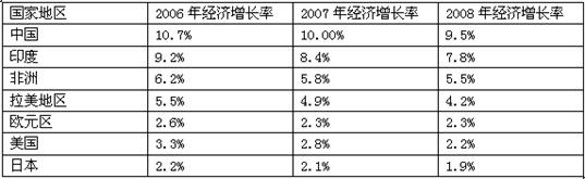 下表是国际货币基金组织2008年4月11日发表的《世界经济展望》报告预测结果: